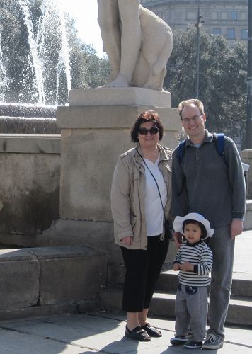 由於老公他媽對目的地沒有意見,我媽想去巴塞隆納,然後我們包括老公他媽都沒去過Barcelona,上網看看巴塞隆納是歐洲遊客第二多的城市,DVD和旅遊手冊上的影片照片也很吸引人,所以應該不會太無聊,於是決定就是巴塞隆納了。再來因為歐洲旅館房間普遍狹小,有鑒於上次去倫敦時都沒有可以煮泡麵或是坐一起好好泡茶聊天吃泡麵的地方,這次我們決定要找看看有沒有類似美國這種裡面家具廚具俱全的短期度假公寓,有的話租公寓會比較適合,結果發現巴塞隆納真的有,我們這次是在friendlyrentals.com租的,三房兩衛浴和一個客廳廚房飯廳一起的開放空間,其中一間房只有一張單人床,不過客廳有挺舒服的雙人沙發床,所以共可睡七個人。我們訂平均每天四個大人兩個小孩十四晚,加上所有折扣和信用卡加價之後,總價1775.2歐元。公寓房間挺小〈因為是在歐洲大城市,我們本來就不期待內部空間會多大〉,還有一些大小瑕疵,可是光地點就加了很多分。步行五分鐘內有三個以上的超市,兩個不同線的地鐵站,和直達機場公車站,實在也沒得挑剔了。很巧的是,雙方家長事先都沒告訴我們他們何時要到,可是老公他娘離開的前一日剛好我爸媽到,所以只有一天傍晚重疊,然後老公他弟和女朋友,在行前兩星期通知我們他們會飛來三天兩晚,剛好我爸媽到的那天傍晚離開,於是床數都剛剛好。依照慣例,訂好機位和公寓後,我們就暫時丟到一邊去了。這次比上次去倫敦之前還混,上次還會上網訂火車票和London Pass,出門前還大概排每天可以去哪裡;這次因為網站一堆看不懂的西班牙文,而且機場離市區大概只要半小時車程,也沒有火車或地鐵直達,計程車價大概30多歐元而已,再加上我們到達時間是清晨六點多,又餓又累又提著一堆行李加兩個小孩,我們決定搭計程車最省事,免了舟車勞頓之苦。於是上飛機前一天到圖書館借了兩本旅遊手冊,其他的就到公寓之後再計畫了。不過後來我們發現從機場有Aerobus公車直達市區,在市區只停三站,第一站是Plaza Espania,第二站就在我們待的公寓旁邊Urgell,終點站是大鬧區Plaza Catalunya,對我們來說很方便,所以後來去接雙方家長,我們都搭這線公車,單程5.5歐元,來回十歐元左右。