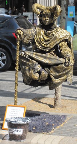 La Rambla是一條購物街,整條街兩邊都是商店和餐廳,中間有寬寬的行人徒步區,兩邊則是賣各種商品的攤子,和表演的街頭藝人