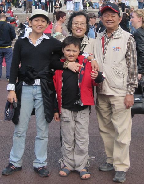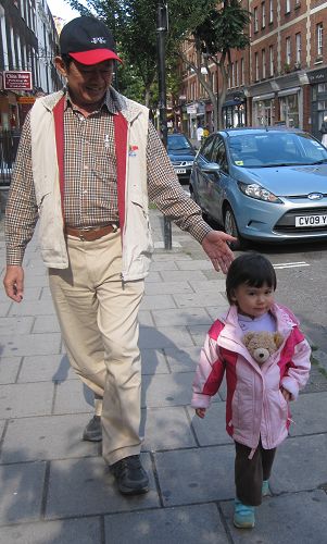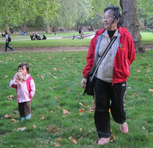 由於爺爺阿媽昨晚才到,回到旅館時都已經11點了,想到我們剛到前兩天睡很多,所以今天就沒有刻意排行程,只決定到泰晤士River Thames河畔、國會House of Parliament、西敏寺Westminster Abbey那一帶走走,能走多少算多少,累了就回旅館。這一整區果然很金碧輝煌,光是House of Parliament和Palace of Westminster沿著河畔一整排就很壯觀,再往西敏寺前進,果然不愧是皇家級教堂,〈國王王后在這裡加冕,死後也是葬在這裡〉外觀很雄偉富麗堂皇,至於內部,當天沒有開放,所以無從得知,不過應該是不會太遜才是。然後不知不覺地,我們竟一路來到白金漢宮Buckingham Palace,在宮殿前的Victoria Memorial停留一下,看到旁邊Green Park一片綠意,就往公園走去,順便休息吃點心。然後也下午四點多了,雖然爺爺阿媽都說還好不累,不過連我都走累了,他們清晨五點多就因為時差醒來的人,怎麼會不累?所以就穿越公園到旁邊地鐵站去,回旅館喝茶休息。