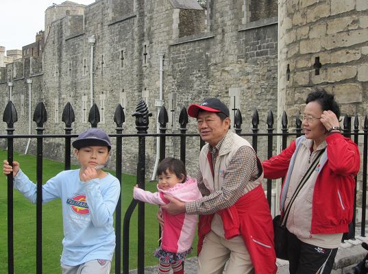 9/13/10 還在美國時就買好的三天London Pass,決定今天啟動開始使用。London Pass有三種,一天、三天、和六天,開始使用的那一天起算連續三天或六天到期,這三天或六天內去參觀London Pass包括的景點,都不用再另外買門票,所以當然能跑愈多景點愈划算。所以我們這三天的行程就是選London Pass有包括的景點逛。第一站來到Luka很喜歡的Tower of London。Tower of London從西元1080年代開始興建White Tower後,歷經各任國王女王陸續增建擴展,所以城牆裡面包括好幾棟towers。裡面有展覽歷任國王女王王冠和王仗上面的珠寶,我們看到聽說是目前世界上未切割前最大顆的鑽石,還有一個Imperial State Crown,光這個王冠上包括2,868顆鑽石, 273顆珍珠,17顆藍寶石,11顆綠寶石,和5顆紅寶石!整間金庫裡真是金光閃閃,燦爛奪目啊!英國王室真的很有錢。