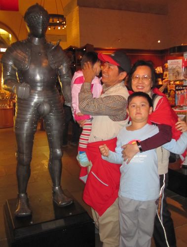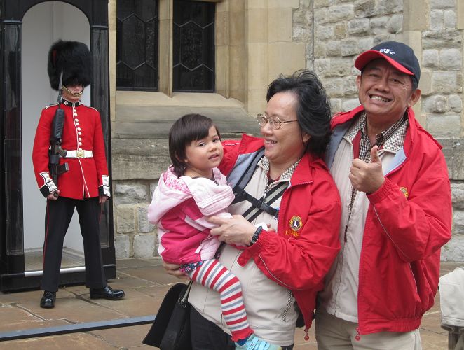 White Tower裡目前有個歷代英國王室國王女王所使用的武器盔甲展覽,挺有趣的,還有小王子小公主小size的。可是左下那種盔甲最吸引我媽和我的注意,因為兩腿之間有好大一個突出啊!爺爺說我們母女倆色咪咪,可是我說一定不是只有吸引我們母女倆的目光,因為展覽裡眾多不同種類的盔甲中,紀念品商店單單只擺了這一種,表示這一個最引人注目嘛!既然Tower of London是王室的財產,當然就會有女王的阿兵哥,我們還在這裡看到大概五分鐘的小小衛兵交接。