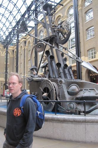 小姑娘肚子餓在吃點心。走去地鐵站的路上經過一個有中庭的shopping center,這個很特別的藝術品就擺在中庭裡。