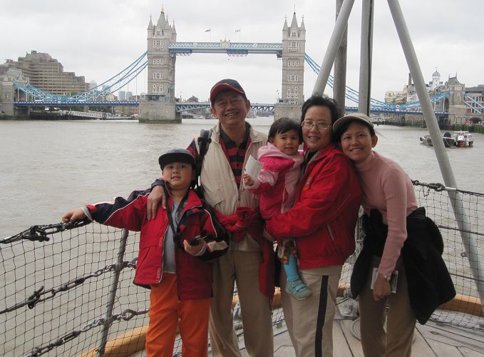 然後繼續往東,來到已經退役的戰艦HMS Belfast。參觀這個戰艦主要是Luka喜歡,老爸也想看,可是我其實興趣缺缺,因為已經參觀過很多戰艦、航空母艦、潛水艇,內部其實都大同小異。爺爺和阿媽也參觀過不少戰艦,也沒什麼興趣,所以我們在甲板上聊天看風景照相等人,老爸則帶著兒子去參觀。HMS Belfast停靠在Tower Bridge和London Bridge之間,所以從船上看出去的風景,差不多是我們昨天走過的地方。下船後我們沿著跟昨天相同的路去搭地鐵回旅館,晚餐在同一家義大利餐廳解決,and then called it a day!