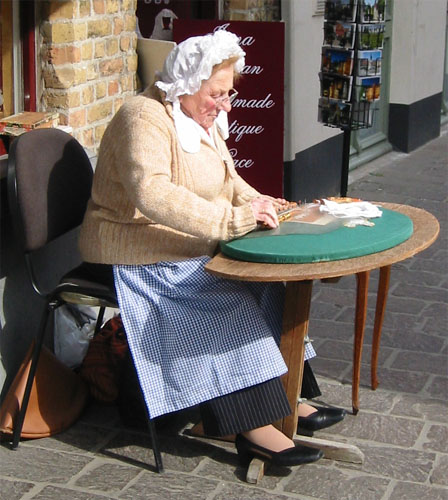 比利時有名的四項特產:巧克力、手工蕾絲製作、薯條〈聽說炸薯條的起源地就是比利時〉和啤酒。Luka和Luka娘對巧克力、啤酒都沒興趣,薯條在比利時倒是幾乎天天吃〈真的挺好吃的,跟別處吃到的不太一樣,吃得到比較多馬鈴薯〉,剩下可以買的紀念品只剩手工蕾絲,可是啊....,人工在比利時一定貴得驚人,小小一個比郵票大一點點的蕾絲,也不見什麼特別的設計,就要二十歐元起跳,我們真正喜歡的都要五十歐元以上,還只是純白小小一塊,沒有顏色的喔!所以還是算了,近近地欣賞比利時阿媽做蕾絲就好。