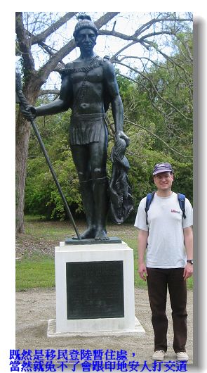 4/11/08 - 最後一天我們來到Charleston Towne Landing,目前是州立公園,Charleston 附近最早的移民就是乘船由此地登陸的,所以大大的公園裡有野生動物園區,還有最早移民生活的保留區,夏天還可以登上仿造當初移民搭的船去探險。可惜現在是春天,還沒開放。