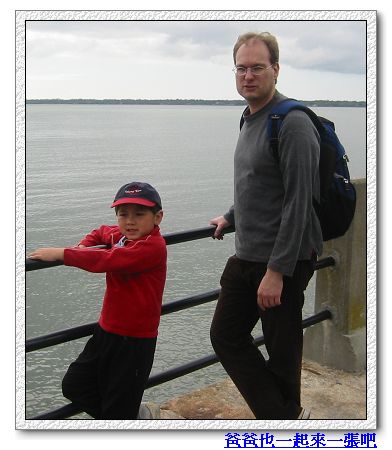 4/9/08 - 今天繼續昨天傍晚沒逛完的古城市區。看著地圖一路往南走,直到The Battery之前開始有沿著Cooper River河岸高起來的行人步道,一邊是河,一邊則是一排擁有當地建築特色的舊建築。一直走到最南端是個綠意盎然的公園,the White Point Gardens,公園的西邊有Ashley River跟Cooper River交會。走到公園時都已經中午了,表示我們已經走了兩個多小時,所以爹娘當然在充滿林蔭公園裡的長椅子坐下來休息,Luka則拿著照相機在公園裡四處跑、到處亂照相,一點也不累的樣子,完全不用休息。