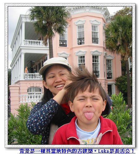 4/8/08 - 這天Luka根本不需要鬧鐘怪物,一大早就跳起來一邊挖賴床的爹娘,一邊興奮地大叫「耶!我們要去Charleston玩了!!趕快起床要出發了!!」看樣子我們家不是只有大人休假旅行高興,小朋友可以去旅行住旅館也是一樣興奮!吃完早餐把行李收拾上車,大概十點出發。下午三點多在旅館check in,少爺到房間後第一件事,鞋襪脫掉跳上床,開始一個一個試躺床上的所有枕頭,找出自己最滿意的,然後宣布那個是他的,別人不可以用,真是怪小孩。四點整裝出門,第一件事當然是去就位在旅館隔壁的遊客中心拿地圖、各式折扣券,然後開始在古城逛小街,順便尋覓晚餐去處。因為一路直接開到Charleston,沒有停下來吃午餐,只有在車上吃自製葡萄乾麵包,所以肚子挺餓,所以走了一個多小時,剛好路過一家旅遊手冊有介紹的餐廳Hyman's seafood,又看到門外掛著「no wait」的牌子,毫不猶豫地就走了進去。吃完大大一整隻比目魚的一面,再也吃不下另一面,實在太大一隻!走出餐廳看到外面長長一排等空桌的隊伍,不禁慶幸我們明智的決定。這家餐廳的兩代老闆都很友善,我們吃一頓飯分別被ㄅㄟˇㄅㄟˊ老闆和老爺爺老闆造訪,老爺爺還給Luka一張免費冰淇淋或爆米花的折扣券,聽我們是遊客,還跟我們聊起我們計畫要去哪裡,給了很有價值的當地人建議;後來ㄅㄟˇㄅㄟˊ老闆又第二次造訪,問Luka愛不愛吃冰淇淋,一邊問著,一邊就要把老爺爺已經給過的折扣券交給Luka,沒想到Luka很誠實地說不愛,害ㄅㄟˇㄅㄟˊ很驚訝地把折扣券玄在半空,交不出手,大概沒聽過不愛冰淇淋的小朋友吧!只好問那爆米花呢?Luka還在想時,媽媽笑著把老爺爺給的折扣券拿出來給ㄅㄟˇㄅㄟˊ看,說我們已經有一張,謝謝ㄅㄟˇㄅㄟˊ的好意。除了經營人用心,食物份量很多也還蠻好吃的,難怪老是大排長龍。吃飽又繼續逛了一下,讓滿滿的胃消化一下,順便又更熟悉一下古城裡的主要街道,就回旅館休息了。Luka睡著後,媽媽肚子裡的baby唉著要食物,於是媽媽又跟比目魚另一面奮戰了一下,不過還是沒能吃完,只好作罷。真的不是我暴殄天物,那隻只給一個人吃的比目魚真的太大了,我們又不在家沒有冰箱保存......應該照張相存證,不過下面的連結可以看到,那魚肉每一面都很厚實 www.roadfood.com/photos/4337.jpg 難怪是店裡賣最好的一道菜之一!