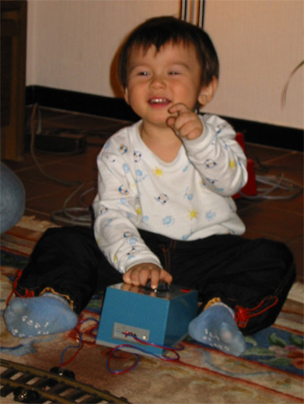 12/23 - Luka正等著爸爸把火車鐵軌組合好 火車開動了!