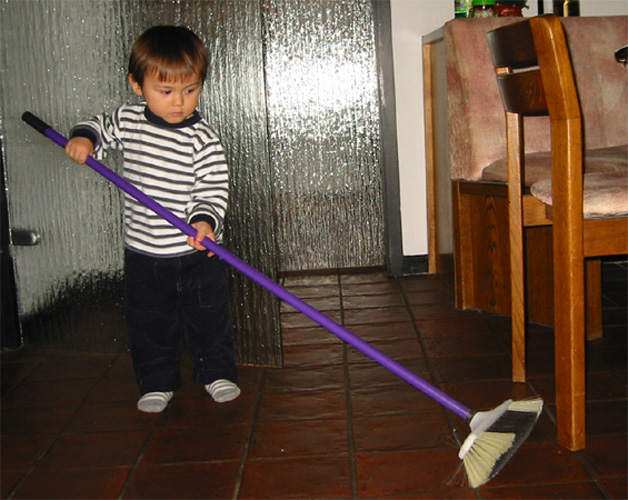 12/25 - Luka果然是雞婆的小朋友,走到那兒,掃到那兒! 當然也不忘穿大人的拖鞋
