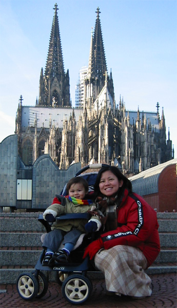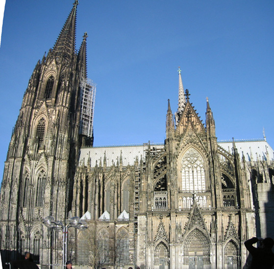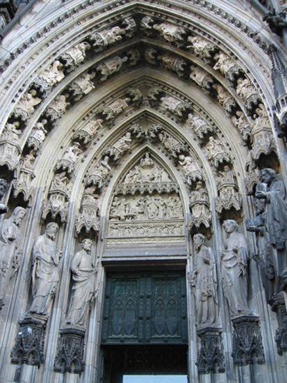 12/30 Coln科隆 - 科隆大教堂很壯觀,每個門口都像這樣環繞著很多的雕刻,所以這座教堂每年都在整修,今年修這兒,明年修那兒。而沿著萊茵河散步非常的舒服愜意,沿岸的咖啡店都可看見收在外面的洋傘、桌椅,夏天坐在河岸、喝咖啡、欣賞河畔風景,一定很美!不過冬天,就算了!