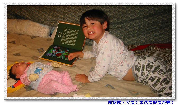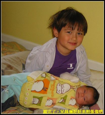 10/17/08 - 爹娘覺得大哥和小妹出浴的神韻還真像,還好只有臉像,所以還是很容易就知道誰是誰啦! 〈右邊當然是大哥小時候的出浴照〉