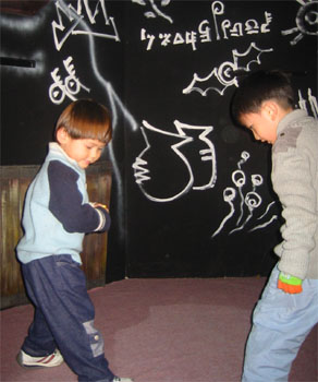2/2/05 - 這是在新光三越裡,霍華的移動城堡的展場,非常小朋友的展覽,大人都蠻失望的。我覺得這部宮奇峻的卡通沒有上次那部「Spirited away」好看,純粹個人看法