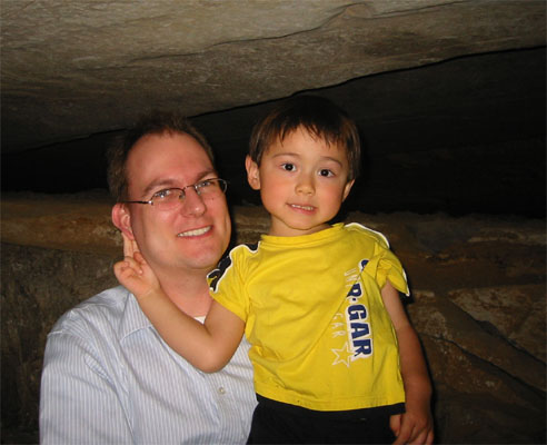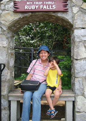 5/6/06 - 大概兩個月前,Luka爹不知 在那兒看到廣告,說很多小男生喜歡的Thomas火車歡慶60週年全美巡迴,五月份有兩個週末要來到亞特蘭大附近,大概兩小時車程遠的Chattanooga。由於Luka很喜歡看Thomas的卡通,也很喜歡玩火車、看火車、坐火車,於是Luka爹娘以罕見的效率,翻月曆確定那時不在德國或台灣、訂好Thomas車廂的火車票〈還好動作快,訂的時候第一節車廂,也就是最靠近Thomas那一節竟然已經賣光了!〉,再討論一下乾脆早一天出發,順便到那兒附近玩個半天,第二天悠哉享受完早餐再慢慢去坐Thomas,於是再以高效率訂好旅館〈爸爸出差累積多時的Hilton點數,又是25000點沒了〉,然後就把這件事拋在腦後了。到了要出發那一早,Luka爹一邊吃早餐,一邊開始抱佛腳,上網找Chattanooga有啥好玩,大概十分鐘左右,我們就決定好路線 - 先到Ruby Falls,一個在深深的地底隧道裡的瀑布,接著到旅館check in,接著再議,連第二天要在哪兒坐Thomas都不知道 - 然後收拾好行李,由於知道Hilton Garden Inn有免費的網路,出發前順手帶了laptop,就上路了。這樣是算超有效率還是超混啊?!