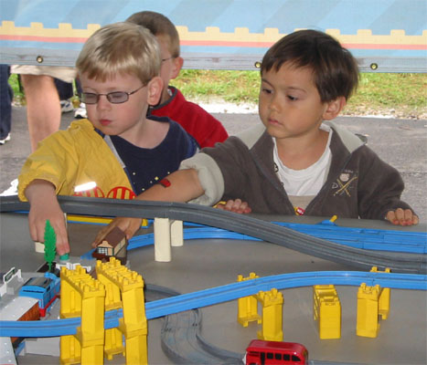 5/7/06 - 這天早上在旅館餐廳慢慢吃早餐時,發現幾乎每一桌都有一、二個小朋友,而且一定有個跟Luka年紀相近的小男生,Luka爹娘覺得他們一定也是要去坐Thomas的,果然後來check out時,有個媽媽在櫃檯問要怎樣去Thomas所在的鐵路中心〈比我們還混啊!〉,Luka爹還當場把早上上網抄來的路線大方分享,後來到Thomas那兒時,所有早餐遇到的爸媽小朋友,都在這兒再次出現,Thomas果然魅力無窮。