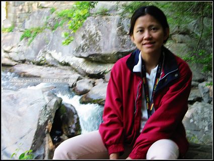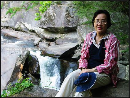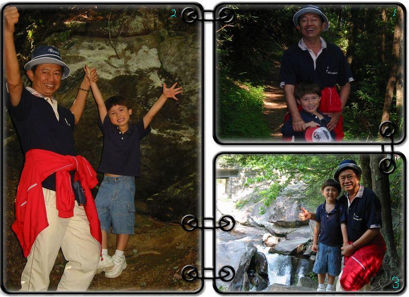 第二天我們在路邊看到這個小瀑布,下車走走後發現這兒有個山林小徑,爺爺和Luka早就興沖沖地愈走愈遠,探險去!剩下懶惰的三人在瀑布附近照相、逗留一陣子,發現爺孫倆絲毫沒有要回來的跡象,而且大叫都沒人回答,決定跟著去看看。接下來就如Luka所描述