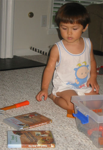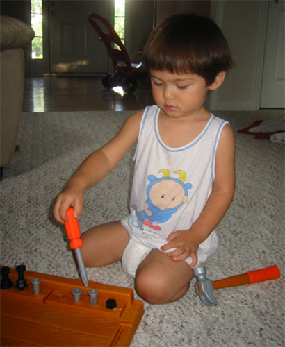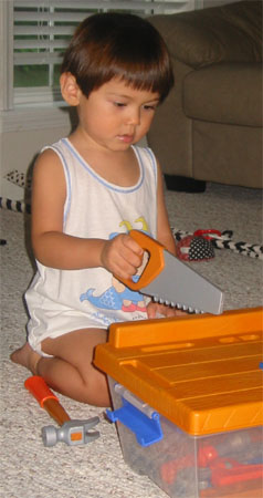 爸爸媽媽送Luka的禮物是Luka專用的工具箱,這樣Luka以後就不用老是要搶大人用的。Luka看樣子很喜歡這套工具箱,後來我們家車庫門壞掉,爸爸拿著工具要修理時,Luka也拿著他的工具要幫忙!