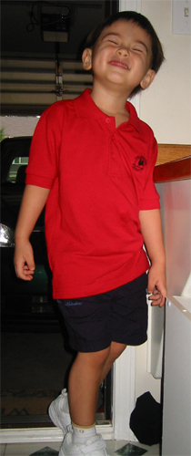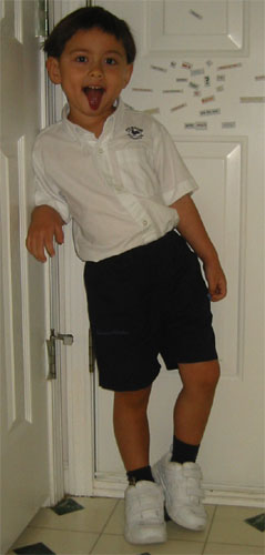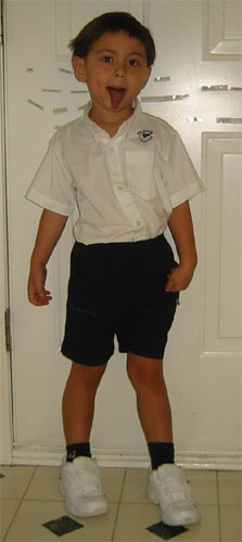 耍寶Luka的第二套制服(穿上後當然要龜毛地批評一下那個袖子緊緊的,穿起來不舒服,他不想穿!沒辦法,制服就是這樣,你跟老師抗議好了,看看他們會不會因此換別種樣式!)