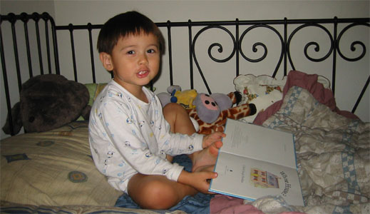 上上星期五中午,我們人就已經在Ikea裡,晚上把新床架組合好,床墊放上去,Luka很興奮地在新床上跳跳跳!媽媽試睡後發現果然變舒服了,不會搖搖搖的。當晚睡覺時Luka照例又要睡到媽媽位置上,不過媽媽可不依了:「Luka,你不睡在你自己的新床喔?新床會傷心哭哭ㄋㄟ˙!」Luka看起來有些兒心動「為什麼床床會傷心呢?」「因為你不睡表示你不喜歡它,它當然會傷心啊!」已經往小床的方向挪一些...「而且那是你自己選的ㄋㄟ,你說你喜歡這一個,我們就買這一個。那既然你不要睡在它上面,表示你也不是很喜歡它,那我們明天拿去還給Ikea好了,這樣別的小朋友才能買它。也許別的小朋友會比較喜歡它,它才不會傷心!」一聽到要拿去退還,Luka馬上跳到小床上躺好:「不要不要,不要給別的小朋友用!」一整晚都沒有跑來跟媽媽擠!之後有幾次Luka又要睡媽媽的位置,媽媽就用同樣的計倆讓Luka馬上回到小床上!一直到現在兩星期過去了,除了偶爾半夜Luka會滾滾滾,滾到媽媽位置上,可是很神奇地,很快又會滾回自己床上睡以外,媽媽晚上睡覺終於不用擔心Luka的小手會「啪」一聲,招呼到媽媽臉上,也不用老是搶不到枕頭睡,或是手沒地方伸了!