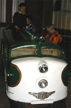 Luka果然很專心,堅持要看過所有的火車,媽媽則是餓得頭發昏。終於在下午兩點多,把心不甘情不願的Luka拉離這輛專門設計給小朋友坐的可愛火車,吃午餐去。奇怪,Luka都不會喊餓的!