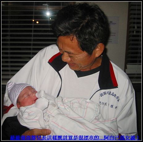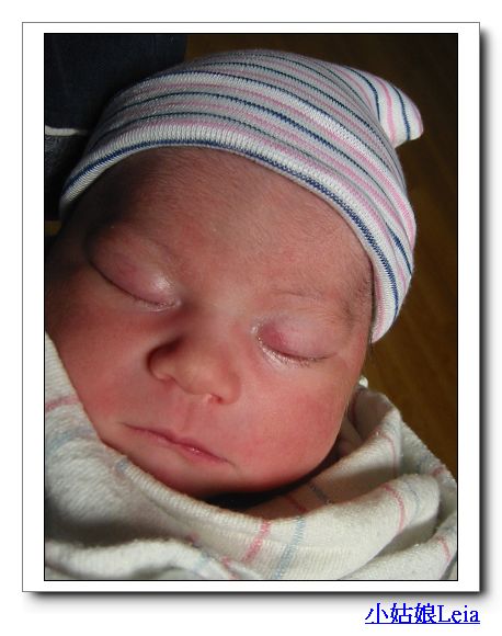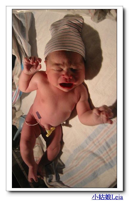 9/9/08 - Leia終於被「催」出來啦! !重3460公克,媽媽一聽到馬上在心裡偷罵醫生:「阿這樣叫做size很小的baby喔?!都快要3500了耶!害我以為會是不到3公斤的小baby!」不過後來查百分比的結果,體重果然只有55%,好像真的是不太大,不過身長卻有72%,阿怎麼照超音波結果醫生說她是「短腿妹」啊?!〈好奇也順便查查Luka的出生百分比,哇,3885克的體重竟然只有75%,而21.5inches的身高卻有96%!原來Luka先天就是高baby!!不過這樣子看起來,美國寶寶似乎有較多肉的趨勢。〉