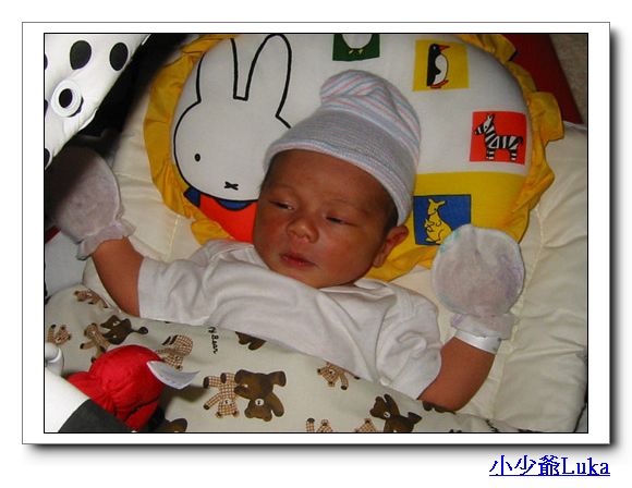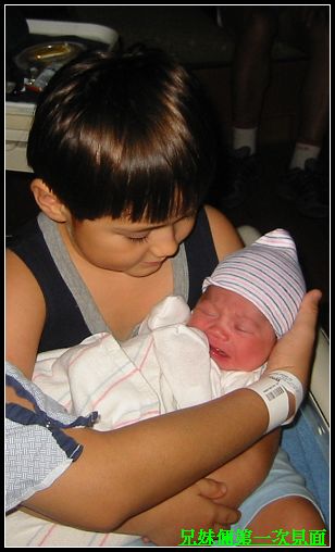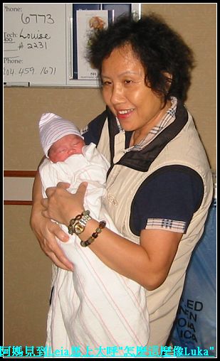 Leia剛出生的嬰兒樣,跟Luka大哥剛出來見人的樣子極為相似,雖然說剛出生的嬰兒長得還不都大同小異,可是對父母來說,自己家的新生兒跟別人家的長得就是差很多。而Leia和Luka這對兄妹的嬰兒樣,是連爹娘和當初也在產房看Luka出生的阿媽都大呼「好像」!嗯,看照片,有圖有真相。左邊是小姑娘Leia,右邊是Luka大哥。相異處:Luka有很深兩個酒窩,Leia只有淺淺兩個;Luka頭髮稀疏,Leia有黑黑長 長又多的頭髮,聽爸爸說在等待媽媽用力推Leia出來的空檔時,醫生都是抓著Leia的頭髮,以防止Leia又溜回去一些,媽媽要多費力再擠一次;然後Luka身上的肉明顯較多,尤其腿上的肉,不過畢竟Luka比Leia重了半公斤。笑話兩則:爸爸當然負責照相的重責大任。照完要選幾張寄給親朋好友,跑來跟媽媽商量哪幾張好,媽媽看看電腦裡的照片:「你搞錯了吧?這明明是Luka的照片啊!」順便心裡挺疑惑爸爸的公事用手提電腦怎會有Luka六年前的照片?這次換爸爸疑惑地望著媽媽,八成在想這個老婆是不是痛得神智不清了:「這些都是Leia啊!」 可是照片看起來簡直就是同一個baby嘛!然後當媽媽把這些照片排排放好做比較,那個爹很肯定地指著右邊下面Luka的照片:「我很肯定這一張一定是Leia!」媽媽指著非常明顯的新生兒鳥鳥:「這張肯定一定是Luka好不好!」果然是同一家工廠出品啦!