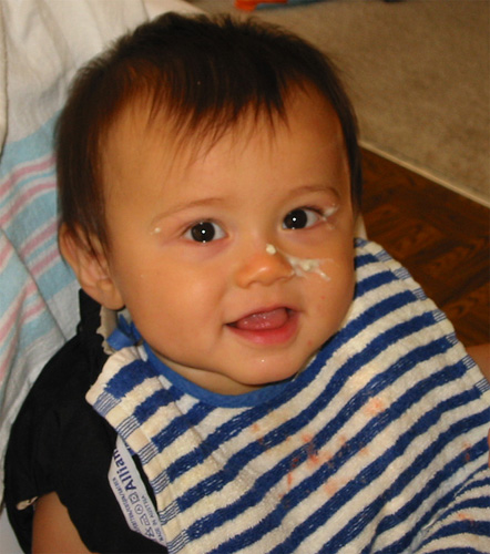 5/30/03 - 看起來像鳥屎掉在Luka臉上!其實是他的早餐啦