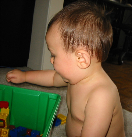 5/31/03 - 媽媽剛幫Luka剪頭髮。剪得不錯吧,再多練習幾次,爸爸的頭髮就也可以由媽媽負責了!