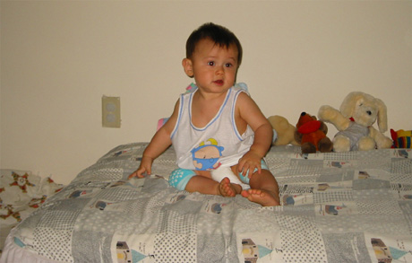 6/9/03 - Luka終於有床睡囉! 不過第一晚Luka摔下床N次,第二天床邊就多了護欄了