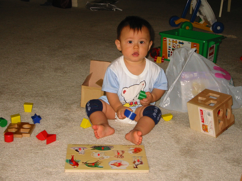 6/13/03 - Luka的新玩具,不過對他而言太早了,他現在只知道怎麼"吃"