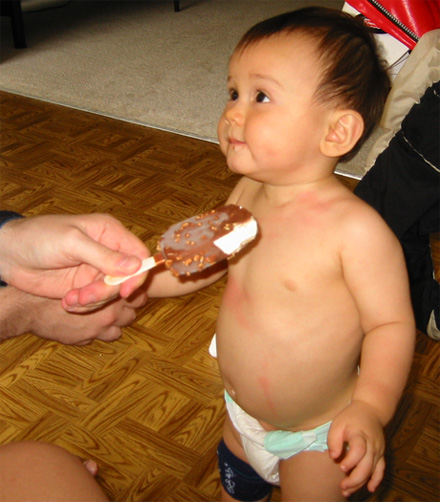 6/14/03 - 嗯,這是什麼?!冰淇淋? 先嚐嚐..... 好吃,我還要!!