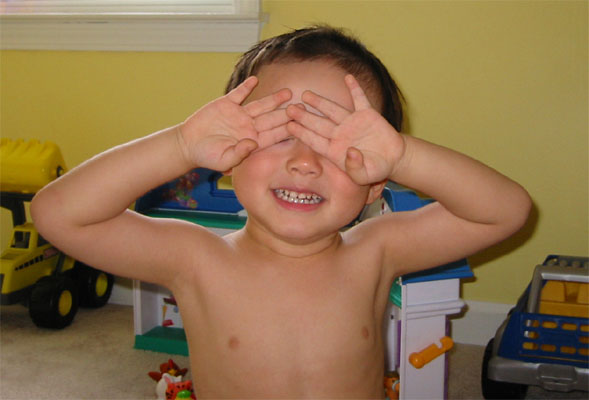 6/9/05 - 不給媽媽照相!                                                好吧,照一下.....剛剪好的頭髮,涼快吧!