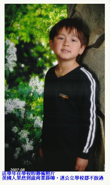 7/11/08 - 上空手道時不知道是Luka不小心還是教練不小心,反正右眼上面被踢到擦傷,留下長長一道擦痕。還好沒有踢到眼睛!所以懂得防身的過程也可以挺危險的。左邊照片好像太高興了,不太像受傷的樣子,再來一張悲傷一點的......這個小朋友很有耍寶的天份....暑假開始每天正常吃喝兩個月後,Luka果然長了很多肉,似乎該來減量了。