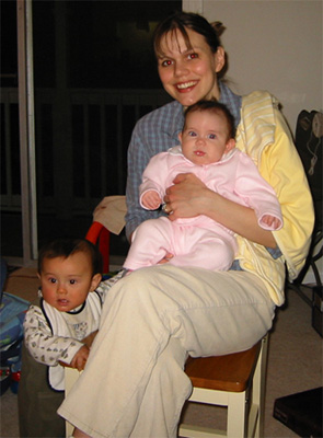 2/28/03 - 嗯,這是什麼?!先試試味道...... 鄰居Jessica和Baby Rachel
