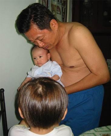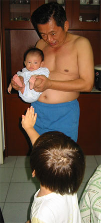 11/11/05 - 我是Luka工人ㄅㄟˇㄅㄟˊ!11/13/05 - 小表妹靠近了,先用力抓抓腳,爺爺趕快抱遠,乾脆舉出「停」的標誌!