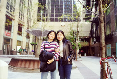 10.2000 嘉雯到芝加哥"出差"(比較像渡假)。左邊是在芝加哥美術館裡,右邊是在芝加哥期貨中心前。